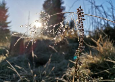 Wenn mann inne hält, zur Ruhe kommt, den Geist leert und die ständig rasenden Ansprüche, Anforderungen und Erwartungen (innen wie außen) verlangsamt, stoppt und ausbremst, wenn Ruhe, Langsamkeit und die Jahres- und Zykluszeitenqualität des Winters einzug hält, es still wird – dann kommt Energie hervor.